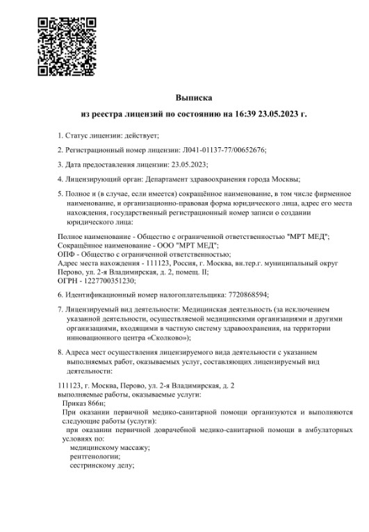 «Первая клиника МРТ» — это клиника, расположенная в ВАО Москвы. Мы предлагаем и оказываем разнообразные медицинские услуги, направленные на профилактику, диагностику и лечение различных заболеваний.