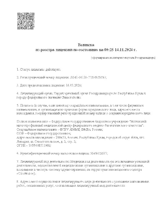 | ФГБУ «Ялтинский многопрофильный медицинский центр Федерального медико-биологического агентства» | Севастопольское шоссе, д. 2 |