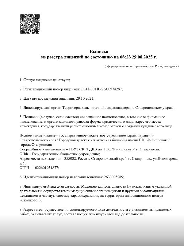 Оказание платных услуг осуществляется при наличии показаний. При первичном приеме с собой иметь: выписку из амбулаторной карты, свидетельство о рождении, паспорт одного родителя. Для исследования с контрастным усилением – консультация педиатра, б/х анализ крови (креатинин, мочевина, СКФ) давностью не более 14 дней.